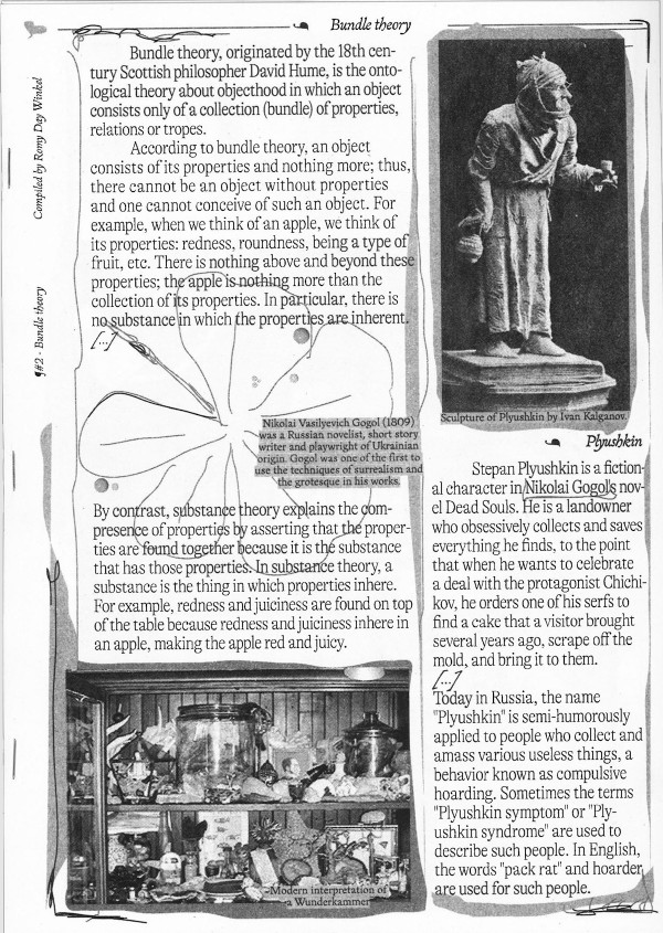 For #2 in the ¶ (Pilcrow)-series Romy Day Winkel has approached collecting, or hoarding, as an aesthetic of patience. Through her selection of Wikipedia articles she looks at what happens when objects, magical or otherwise, are all put together. If it is impossible, and perhaps even uninteresting, to know when a collection or archive is finished, how does one start to hoard impatiently?